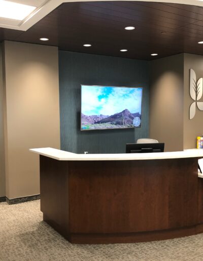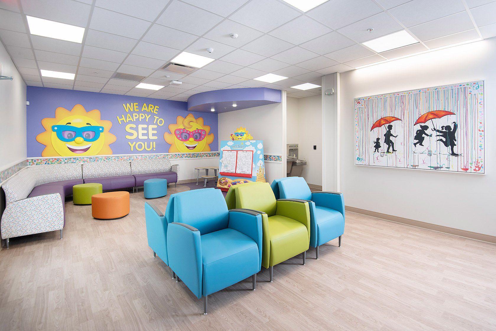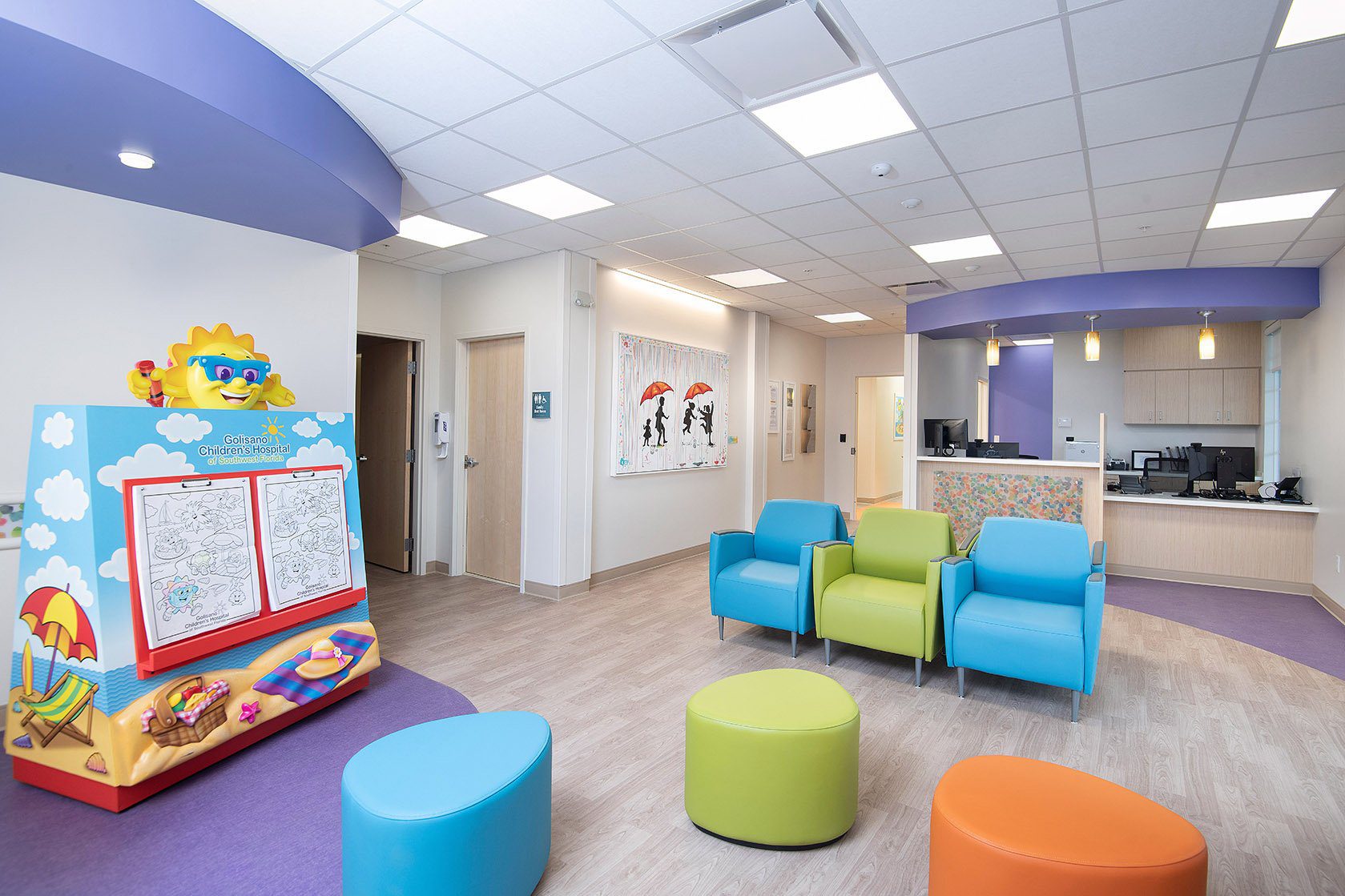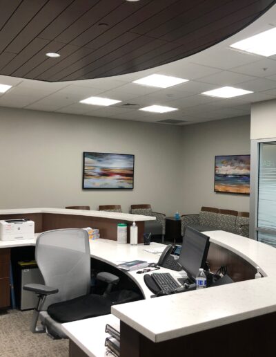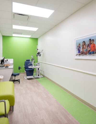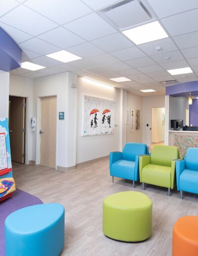 This 6,500 square foot project was a complete interior remodeling of a former real estate office. The colorful interior motif caters to the young patients. The program includes exam and testing rooms, offices and support space.