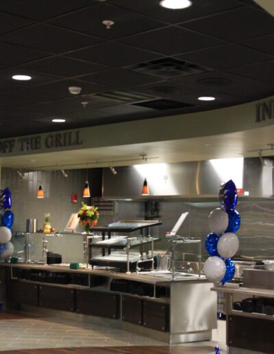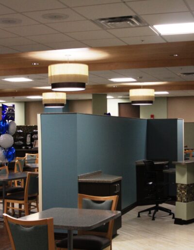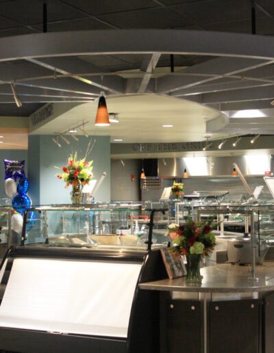 Renovation of the servery space at HealthPark Medical Center required the entire area to be redesigned for more efficient serving lines all well as upgrading furniture and fixtures to provide a more upscale dining experience.