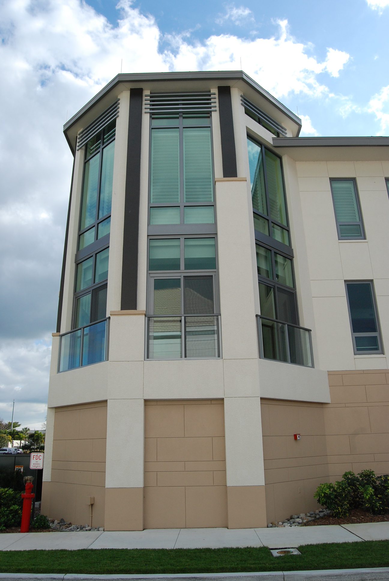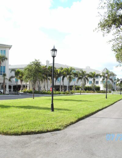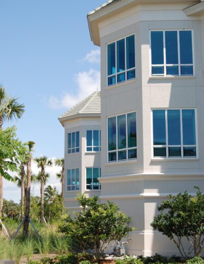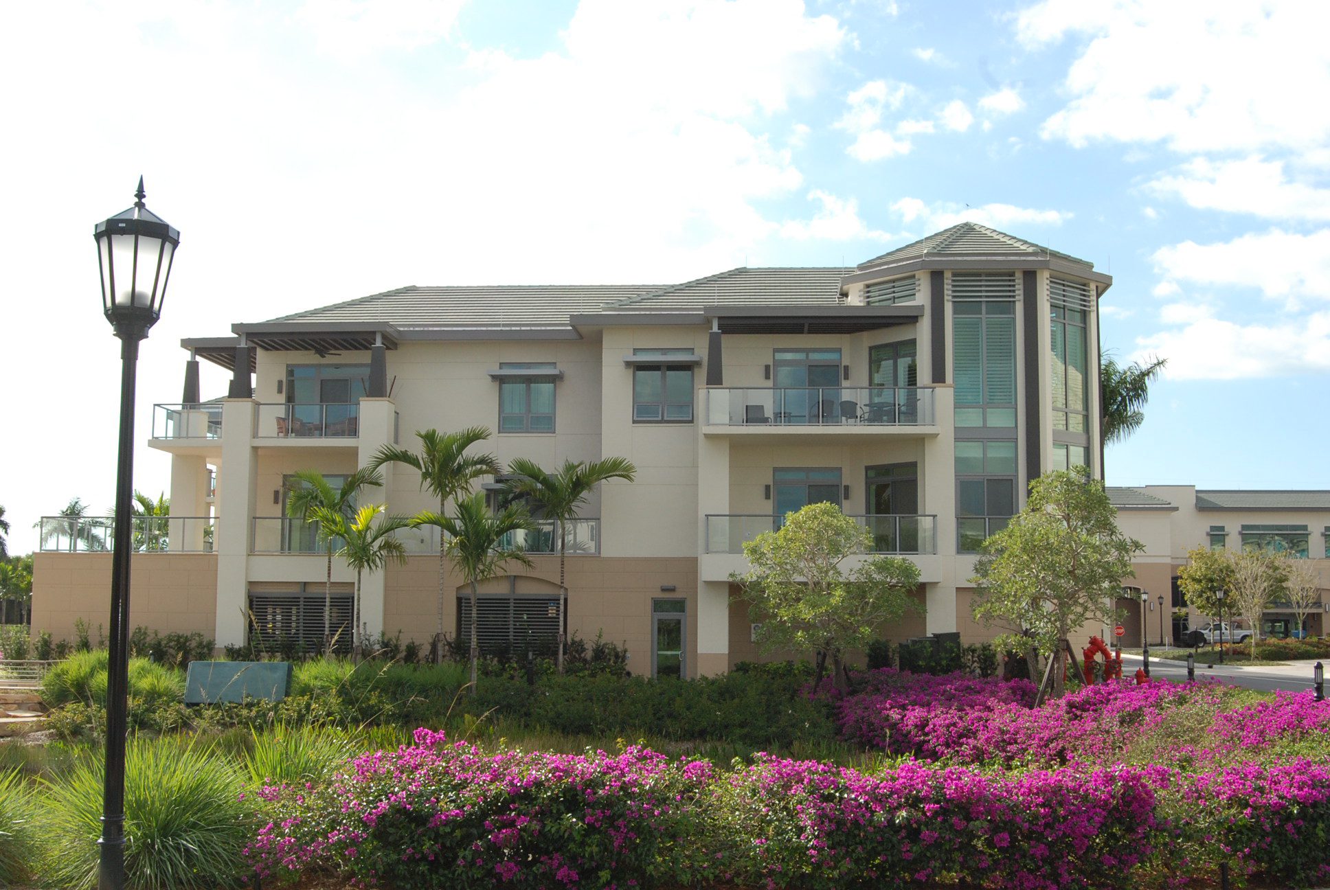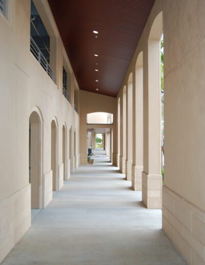 J and K Towers provide fifty-four independent living apartment units. The four-story central courtyard encourages interaction among residents, as does the front porch area at the entrance to each unit. Covered parking for each unit is available on grade beneath the building. The glazing is hurricane-resistant, and each building is equipped with a backup generator.