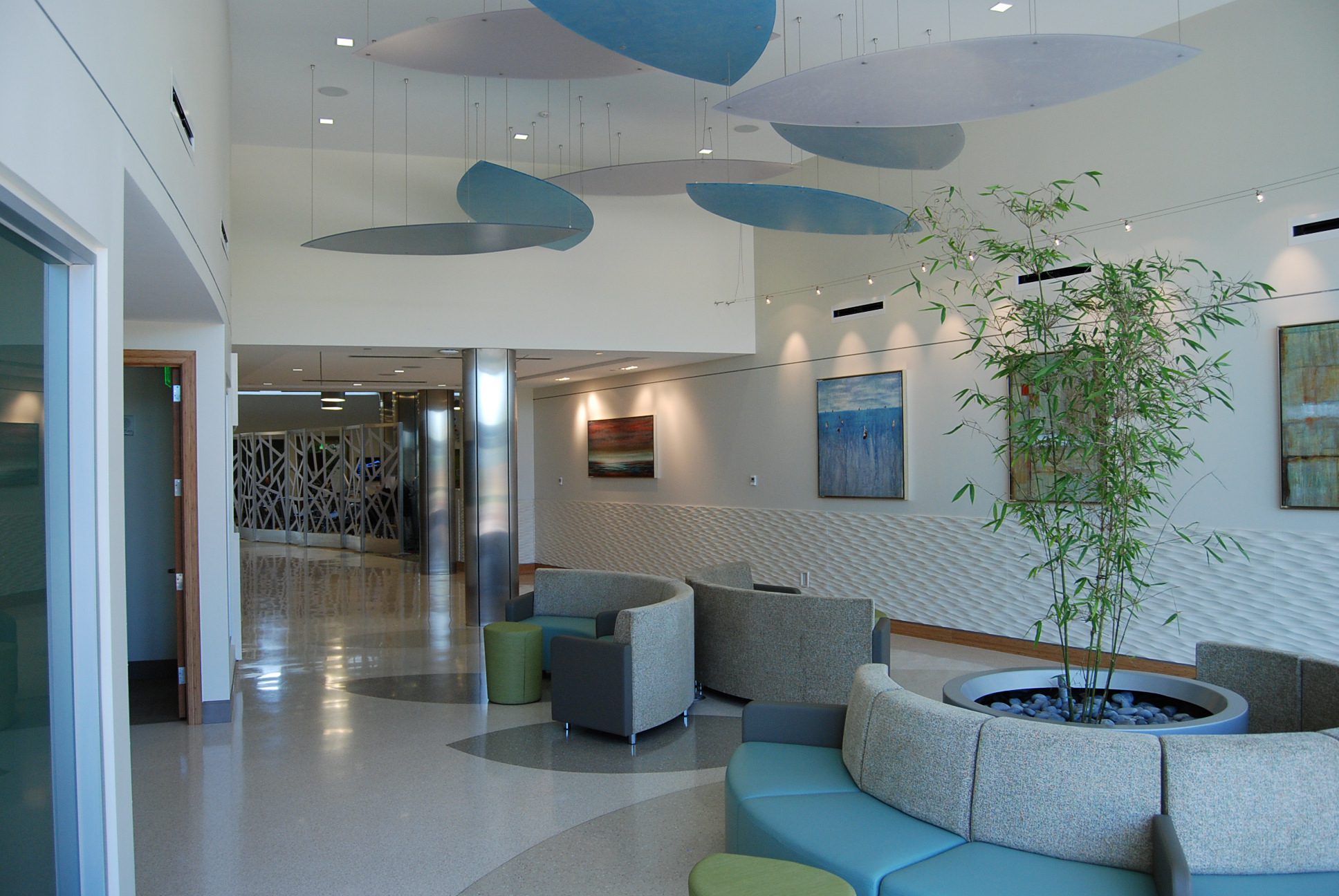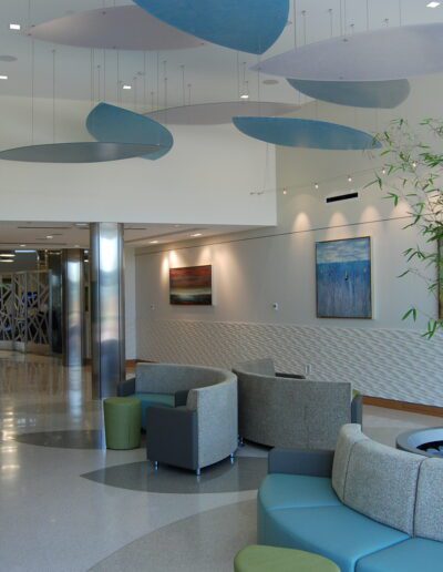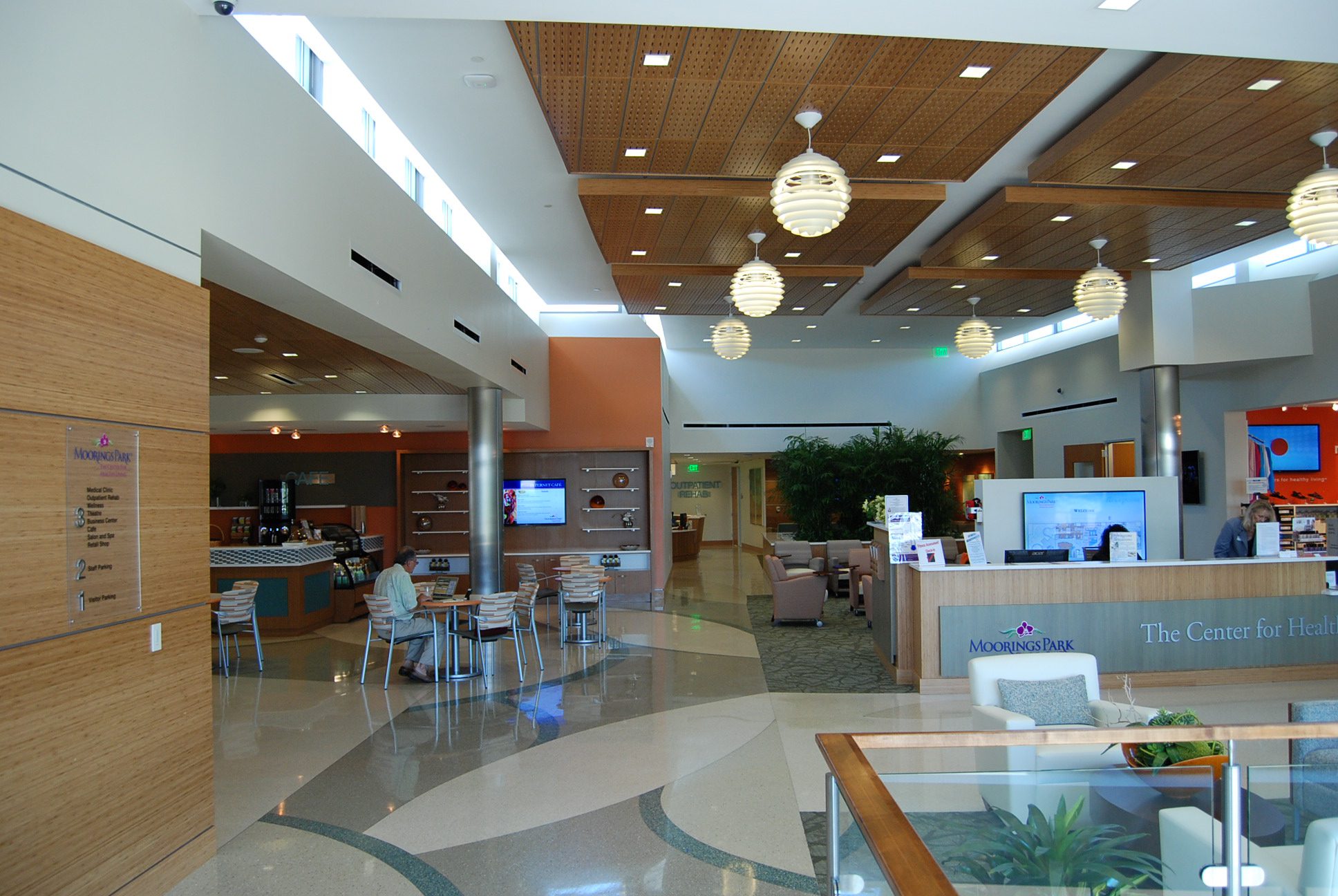 The Center for Healthy Living contains approximately 166,000 square feet on three floors. The first two floors contain parking and serve visitors to the nearby Chateau skilled nursing facility and Trio restaurant. Facilities include PT Rehab, spa with massage areas, beauty salon, a medical clinic, and a lecture hall. Two roof gardens on the north and south ends of the building allow for future growth.